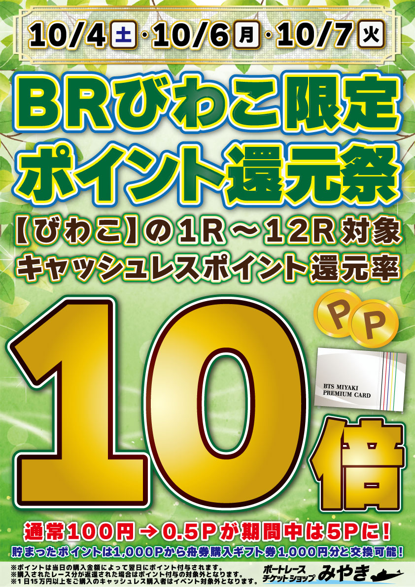 10/4(土)・10/6(月)・10/7(火)【びわこ限定ポイント還元祭】開催!