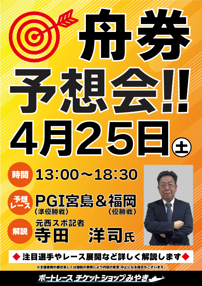 4/25(土)13:00~BTSみやき予想会(元西スポ記者・寺田洋司さん)