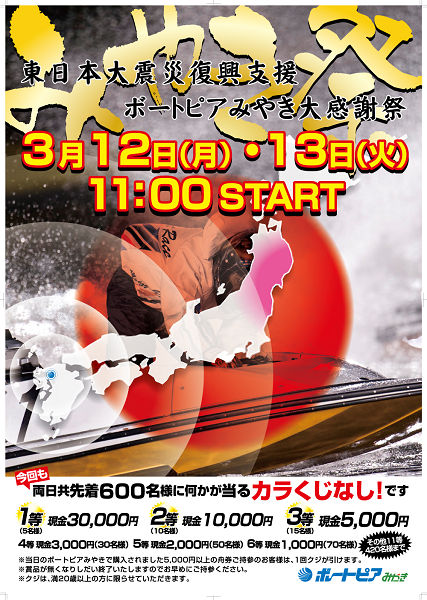 『3月のみやき祭は「東日本大震災復興支援&ボートピアみやき大感謝祭」』11時スタート
