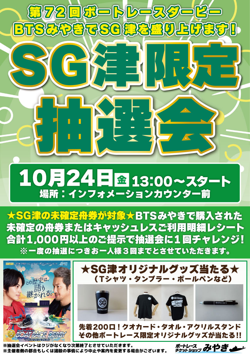10月24日(金) 13:00~ ◆SG津限定 抽選会◆開催!!!