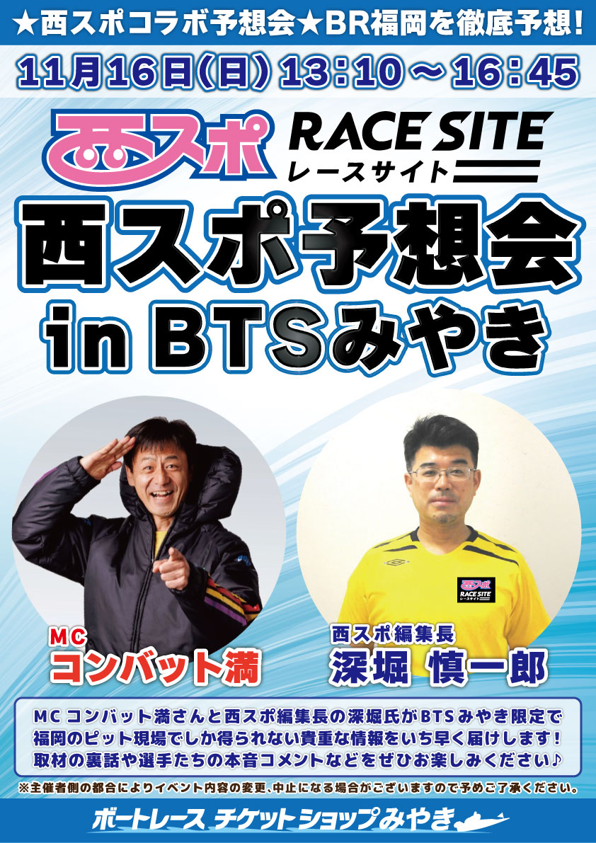 11月16日(日)13:10~「BTSみやき 西スポ予想会」開催!!