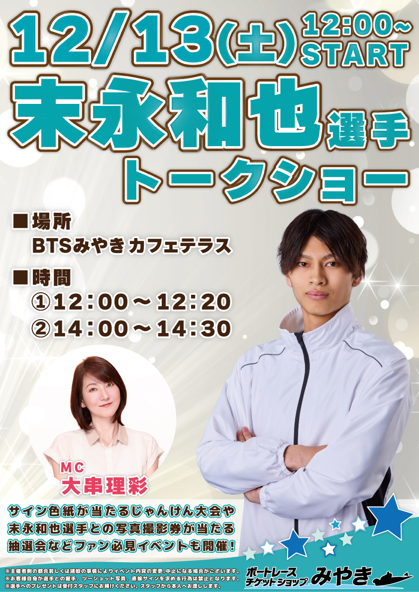 12/13(土)12:00〜【5084 末永和也選手 トークショー】開催!!
