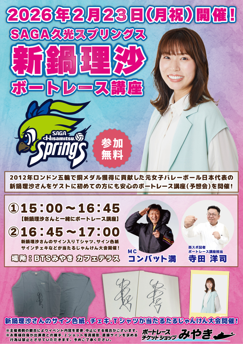 2/23(月祝)SAGA久光スプリングス 新鍋理沙さん ボートレース講座開催!