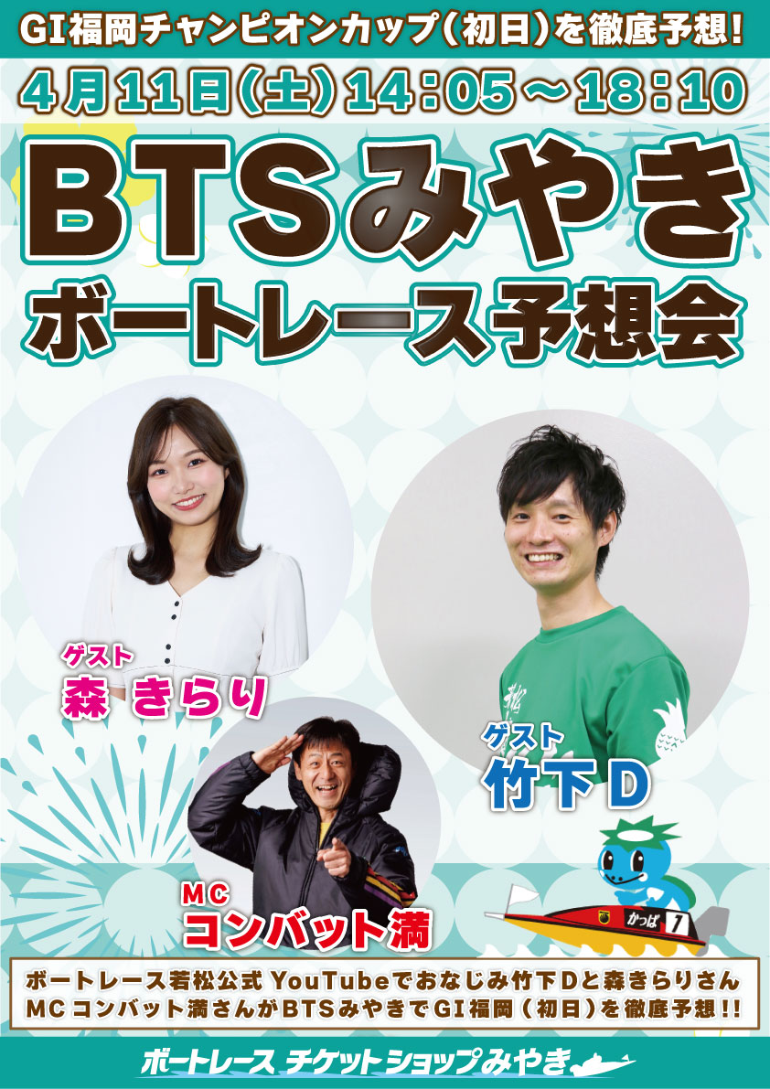 4月11日(土)BTSみやき予想会 14:05~18:10【竹下D・森きらり】