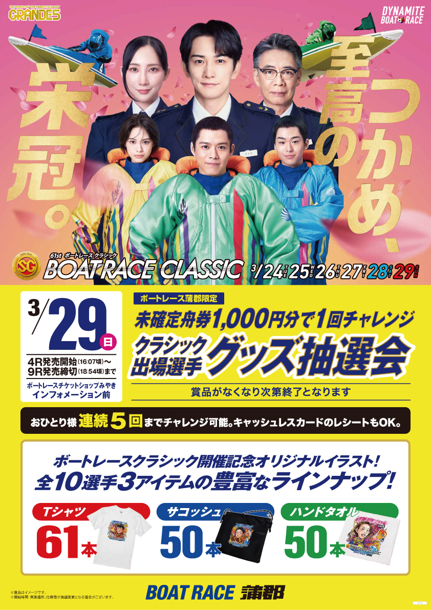 3/29(日)16:07~BR蒲郡限定『クラシック出場選手グッズ抽選会』開催!!