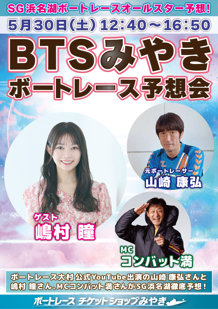 5月30日(土)12:40~ BTSみやき予想会【嶋村瞳さん・山崎康弘手選手】